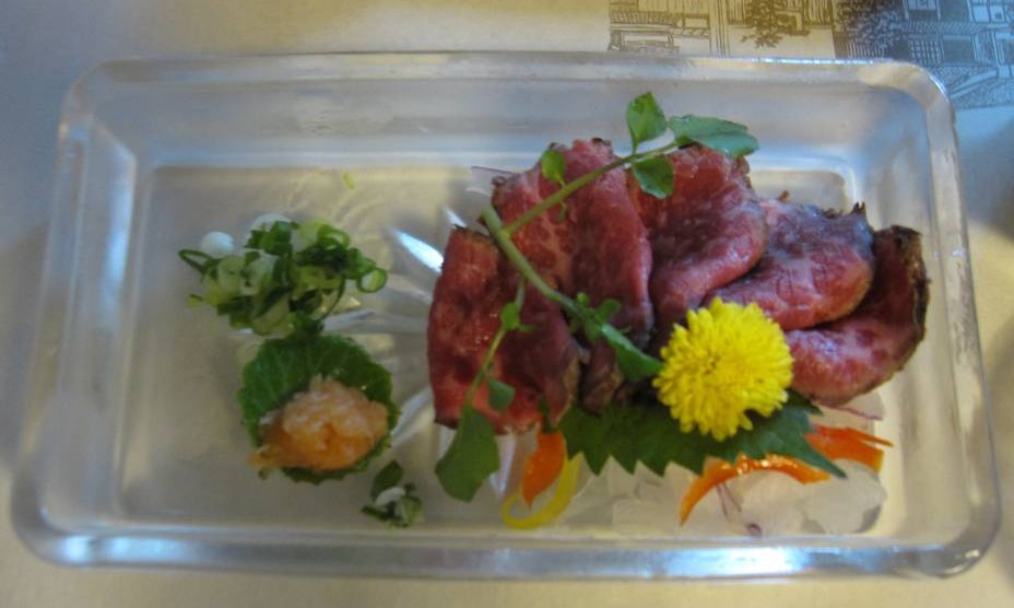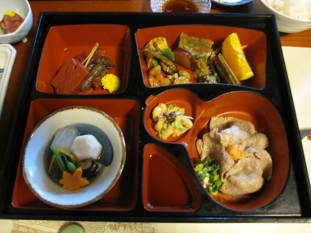 下山し、八幡堀沿いの郷土料理「喜兵衛」にて昼食を取りました。八幡の素材である近江牛、赤こんにゃくなどを使った喜兵衛膳を賞味しました。